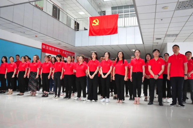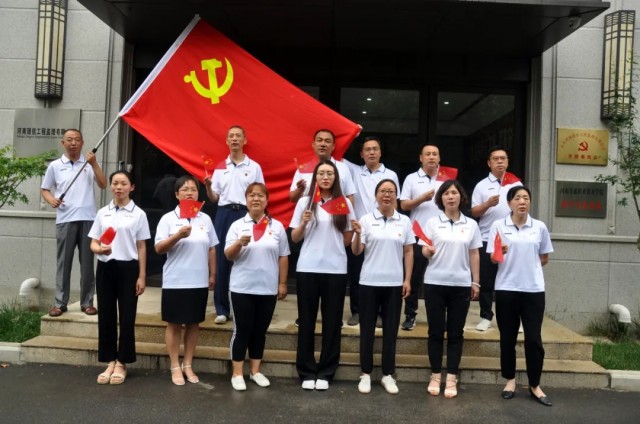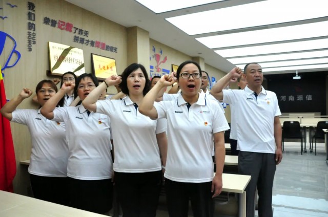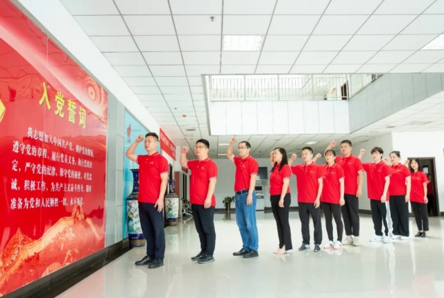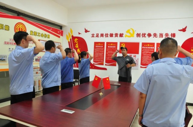 在董小輝的帶領下,全體黨員莊嚴舉起右手,重溫入黨誓詞,鏗鏘有力的聲音響徹云霄,心中的理想和信念更加堅定。